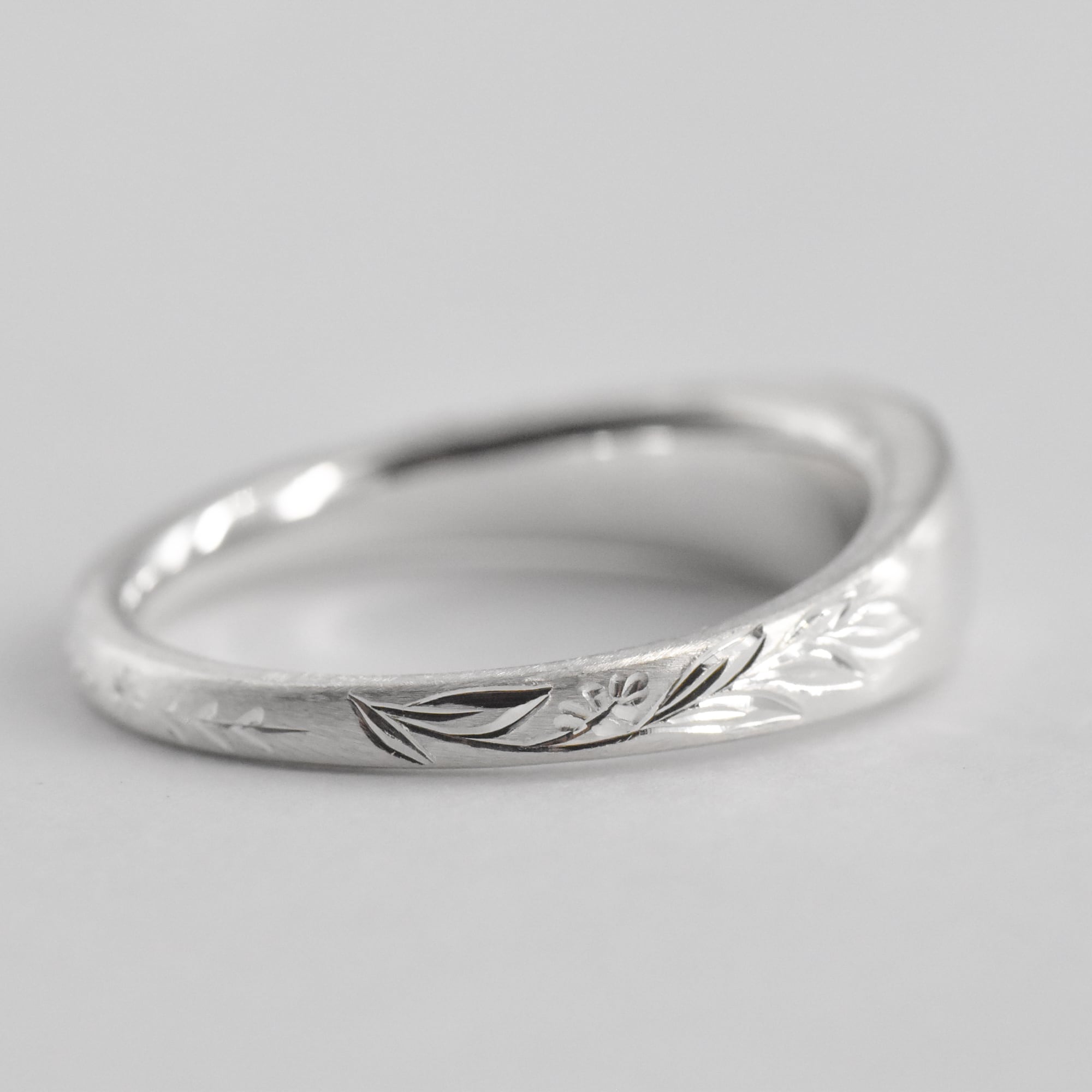 全体の表面処理は銀の白さを際立たせるヘアライン加工で仕上げています。