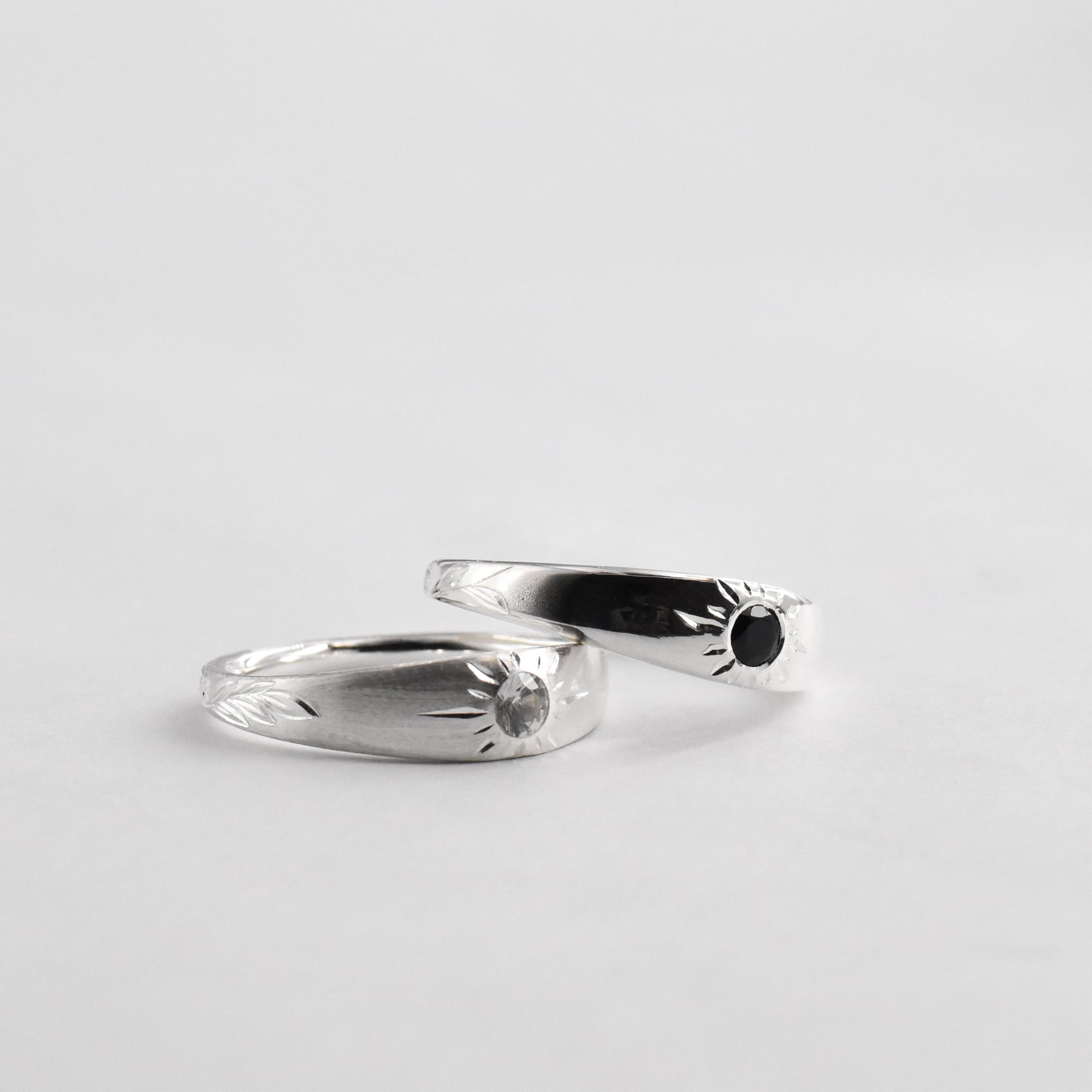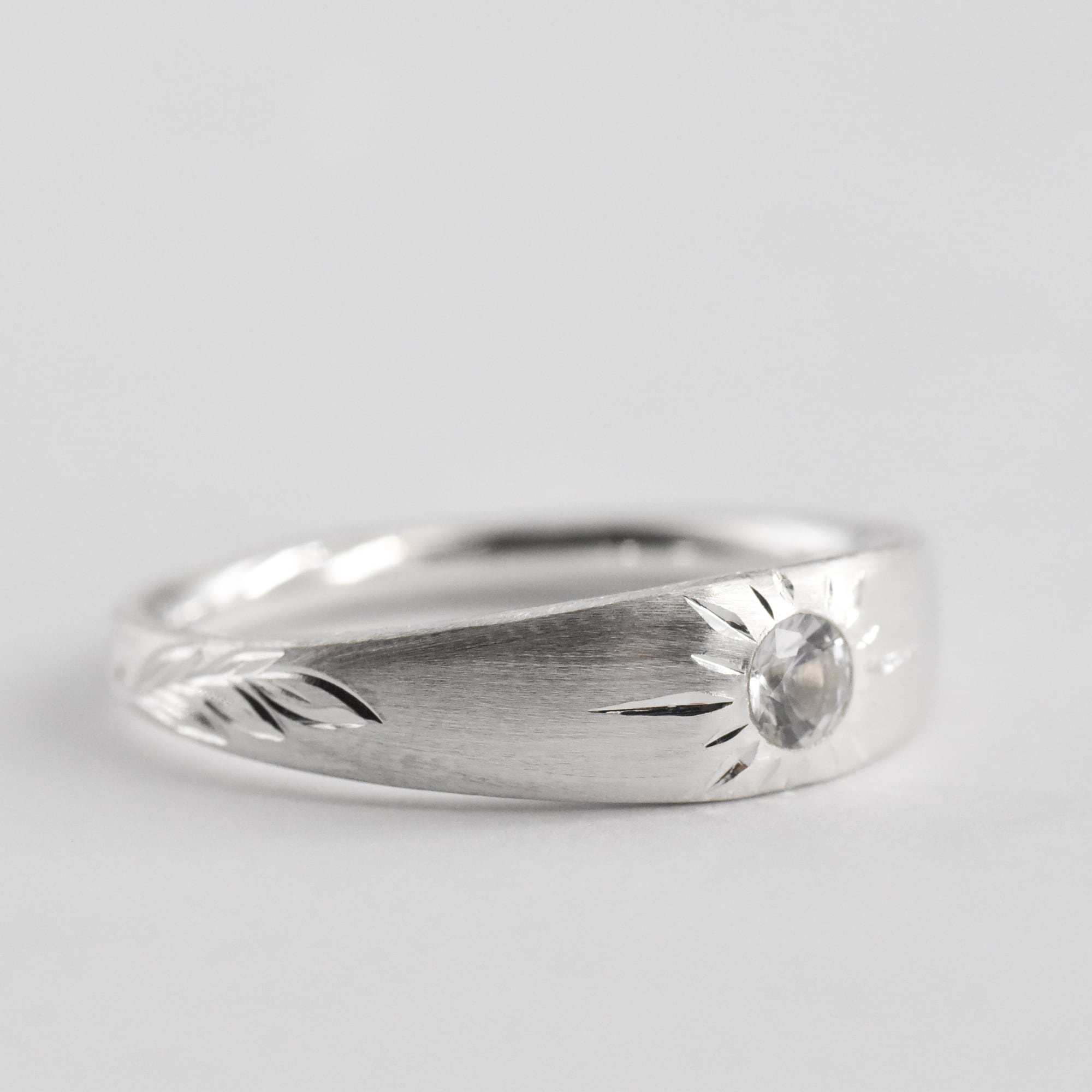 中心にはホワイトサファイアと太陽の彫り。