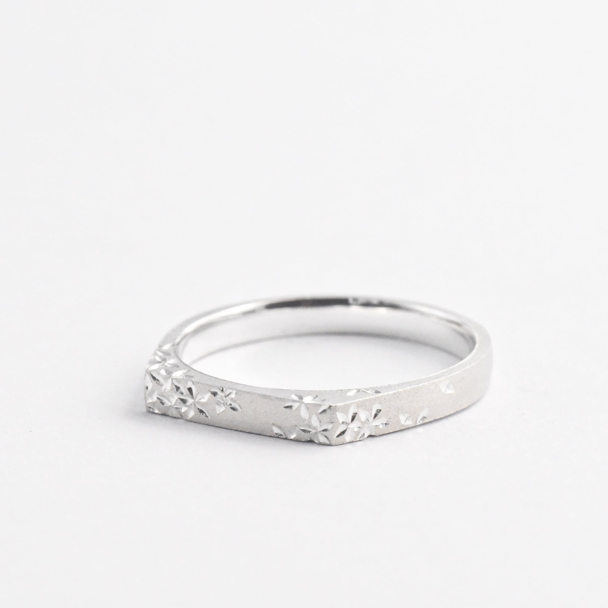 きらめく小花を散りばめた「fleur」デザインのシグネットリング