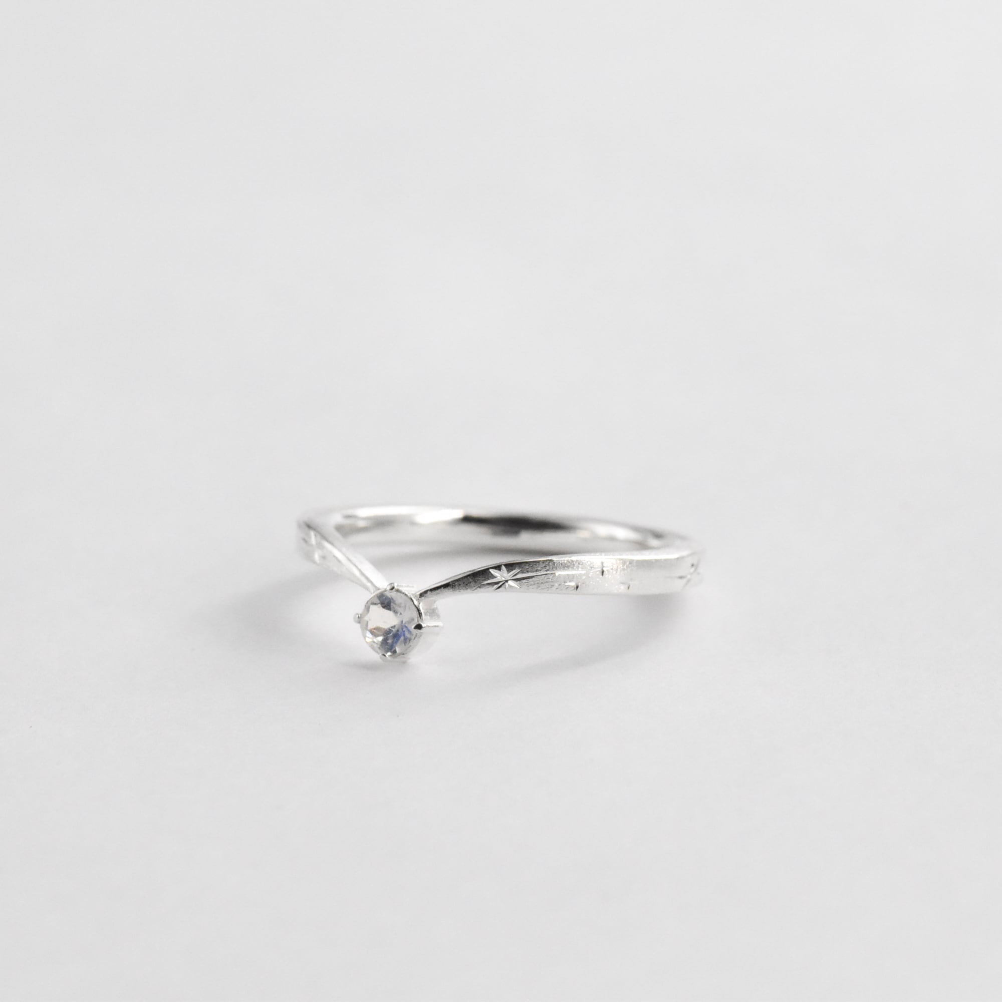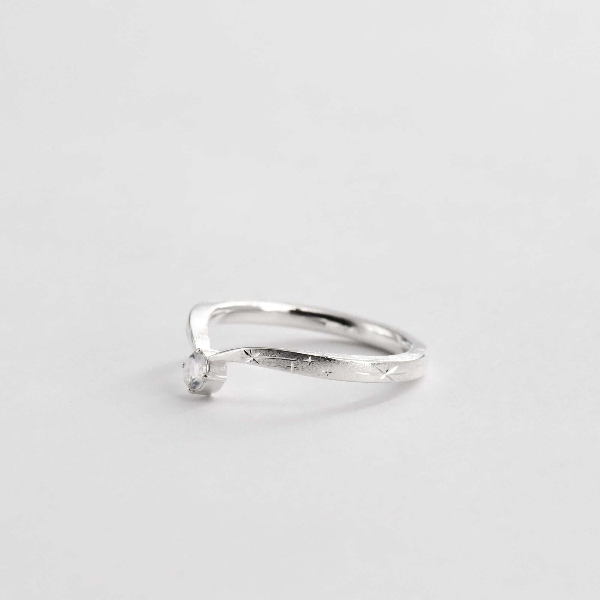 美しい曲線を描く指輪に流れ星の彫りを施し、