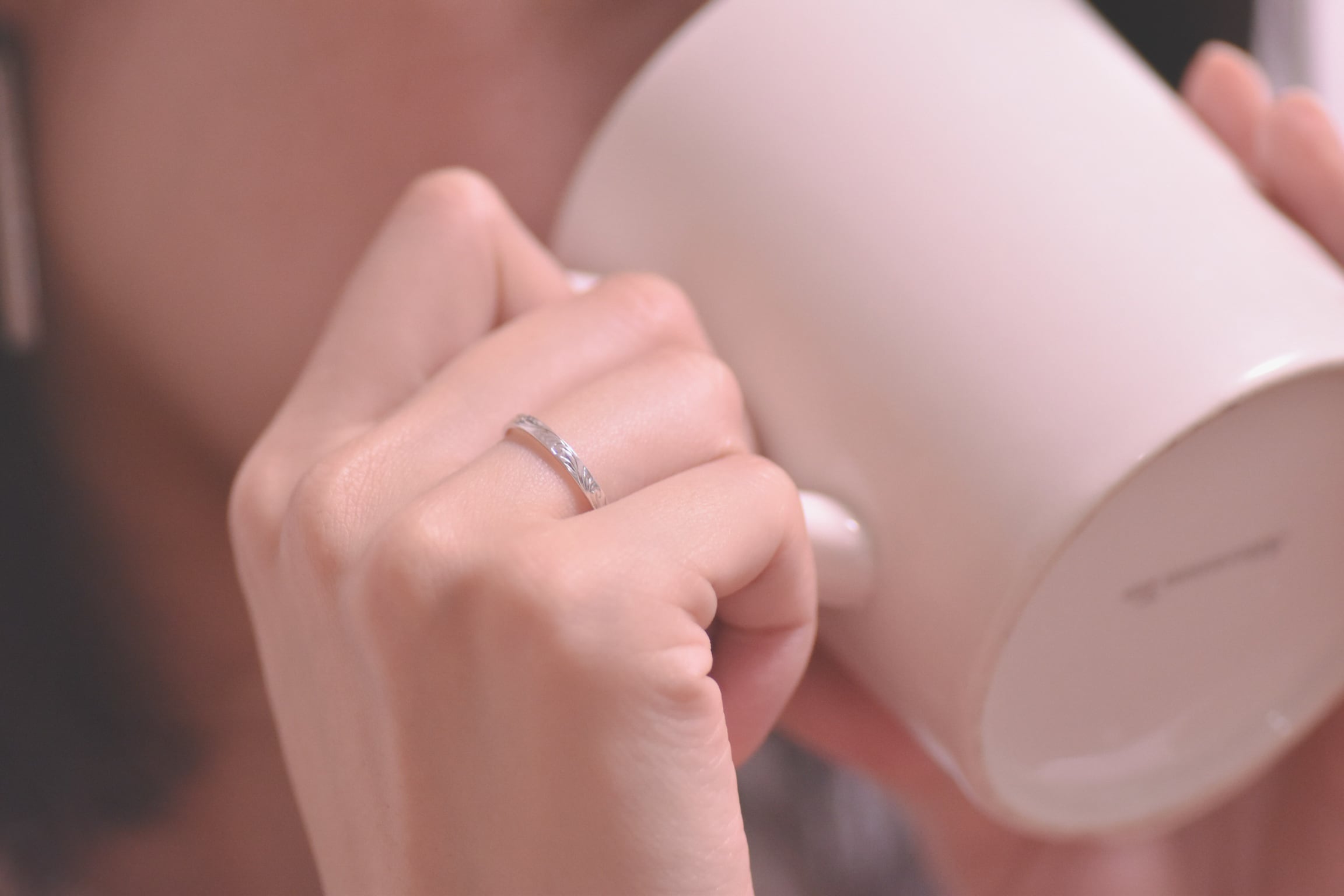 アカンサスの模様を一周途切れなく彫り入れたリング。